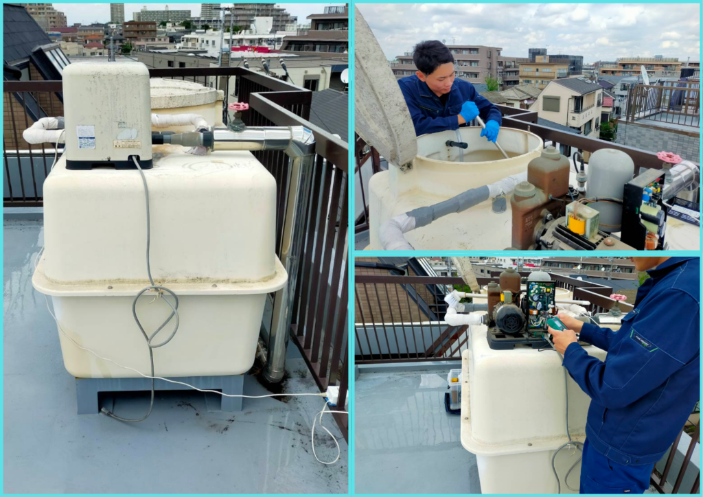 槽内清掃+給水ポンプ点検+10項目水質分析付きで40,000円(税抜)~